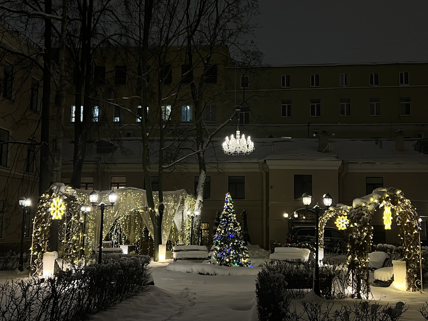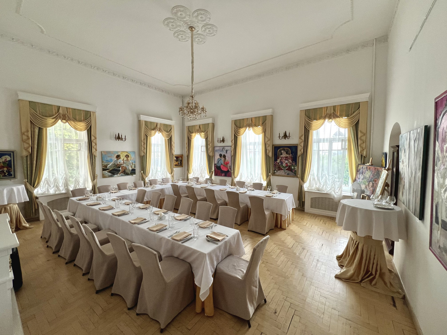 "Парадный зал", «Музыкальная гостиная», «Зал Образцовой», «Гостиная Брюллов», «Клубный театр» и живописный внутренний сад с шатром, представляют новое культурное пространство северной столицы.