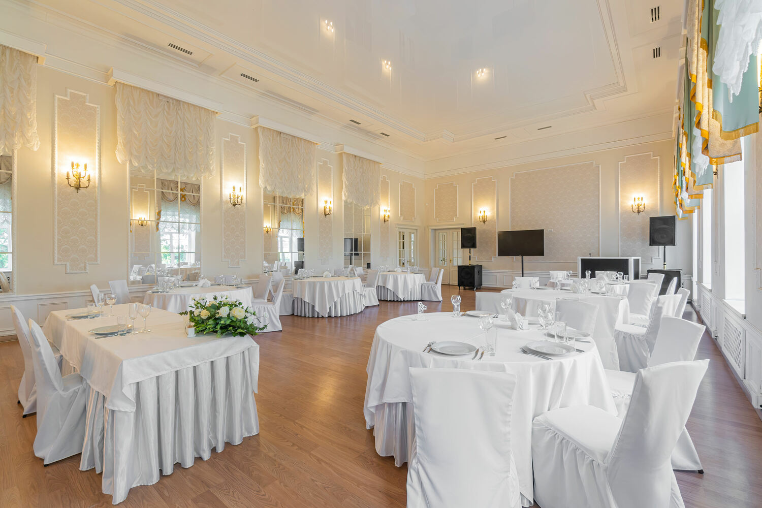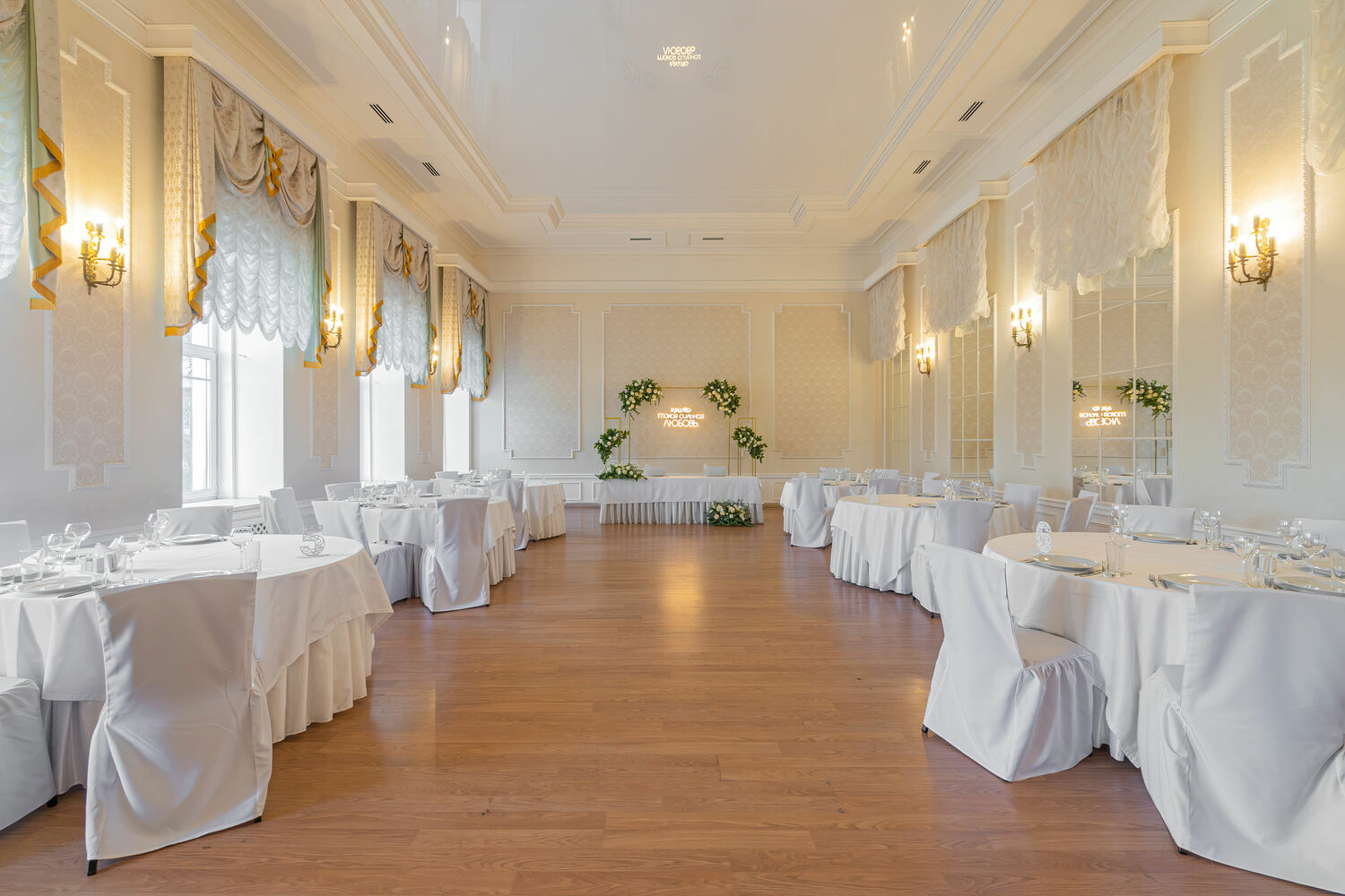 В зависимости от количества приглашенных, мы подберем зал, где вашим гостям будет удобно и просторно.