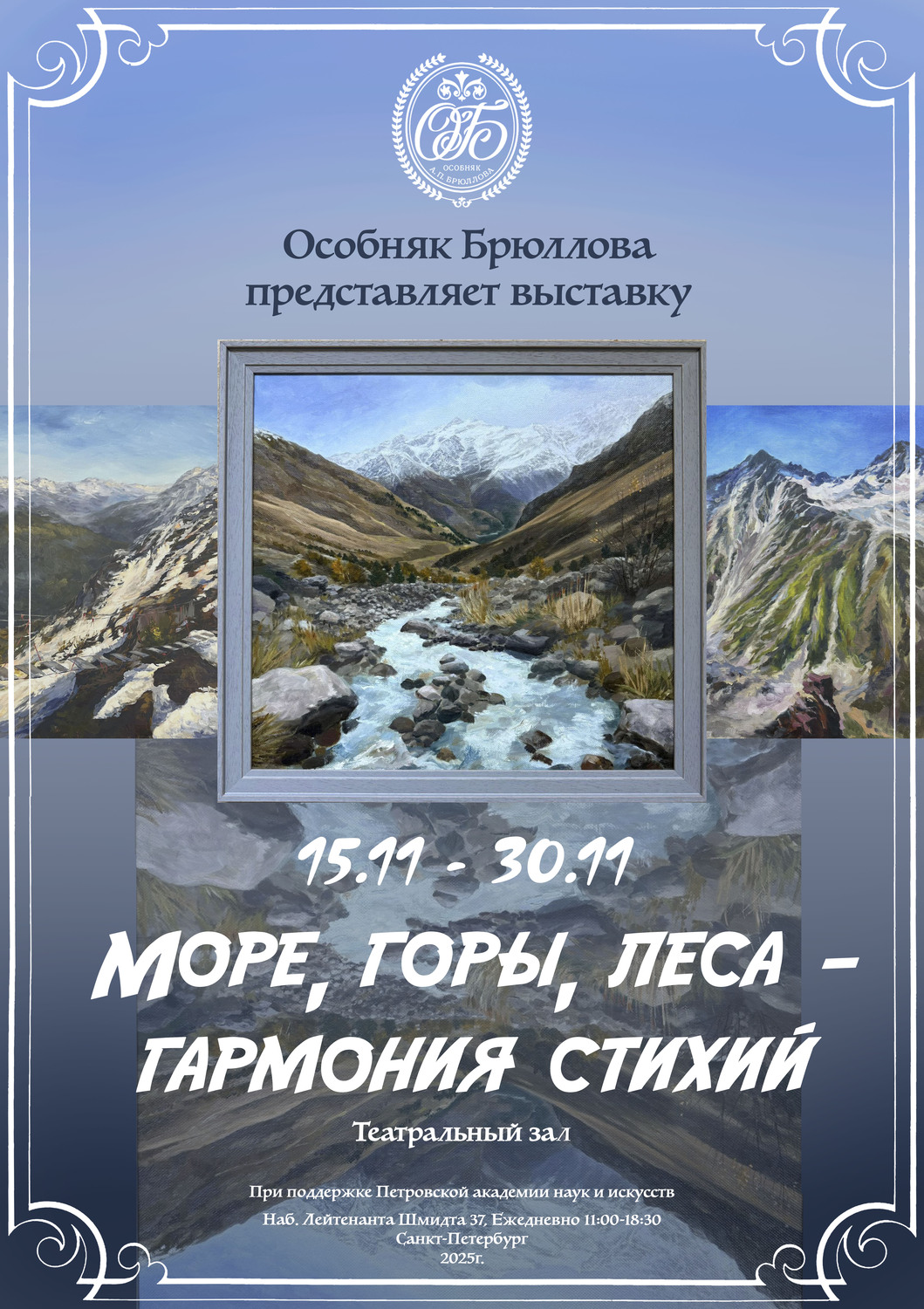 Дорогие друзья, с 15-30 ноября в Театральном зале особняка Брюллова пройдет выставка  "Море, горы, леса - гармония стихий"!