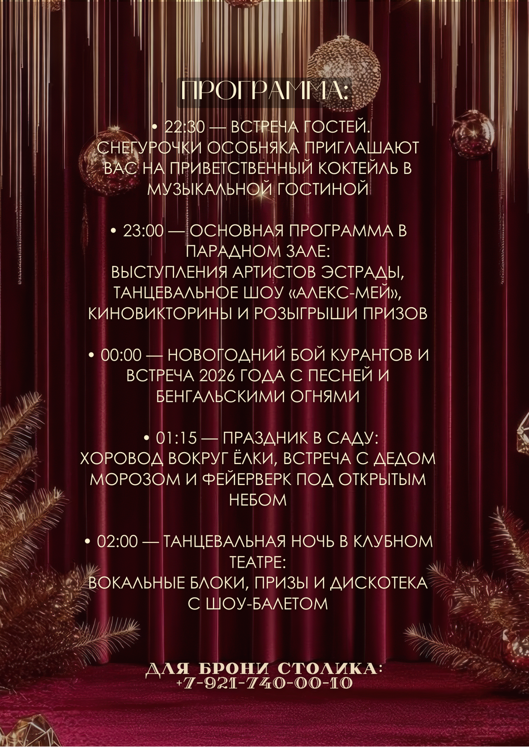 ПРИГЛАШЕНИЕ И ПРОГРАММА НОВОГОДНЕЙ НОЧИ